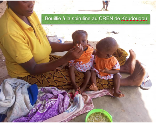 En 2021, nous avons distribué 180 Kg de spiruline au profit de 3 Centres de Récupération et d’Education Nutritionnelle (CREN) de la région de Koudougou, soutenus par la Caritas du diocèse de Koudougou.